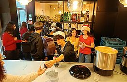 On the evening of the party, the students took on a variety of responsibilities, supporting the Caritas team by running the cloakroom, welcoming guests in several languages, serving dinner, and helping with the clean-up at the end of the event. Their willingness to contribute wherever needed reflected a strong sense of responsibility and empathy.